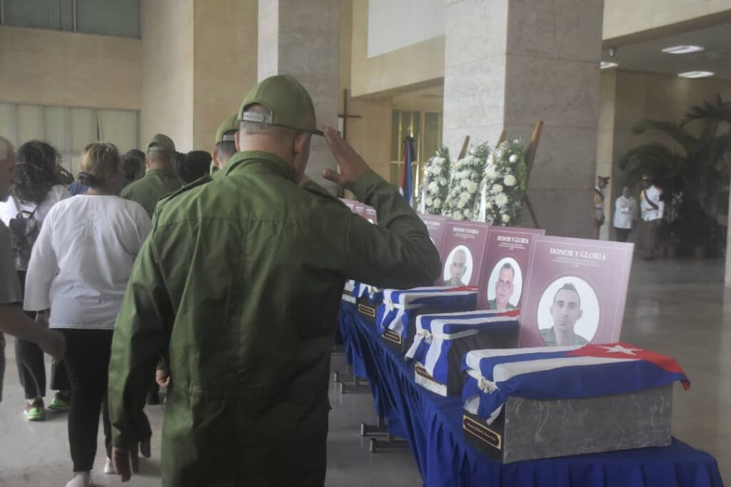 Este jueves en la capital de Cuba el pueblo en larga fila silenciosa rinde tributo a los combatientes caídos el 3 de enero último, cuando el gobierno de Estados Unidos atacó la residencia de Nicolás Maduro, presidente constitucional de Venezuela y lo secuestró en una violación flagrante del derecho internacional.