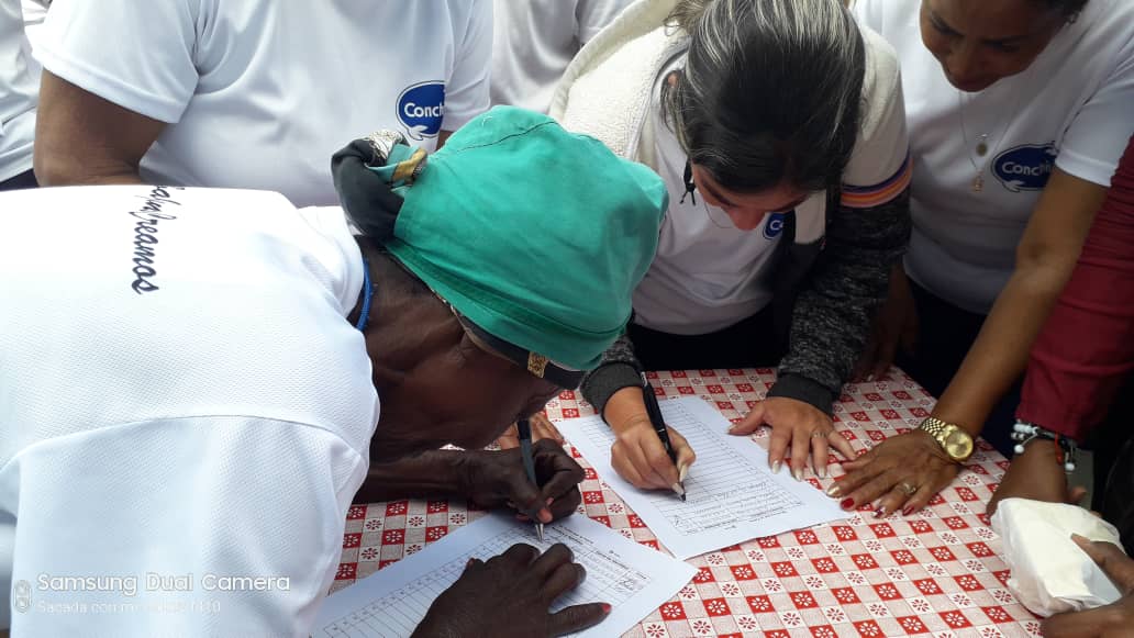 Y la respuesta también la dan los humildes hombres y mujeres de La Conchita con su firma por la patria.