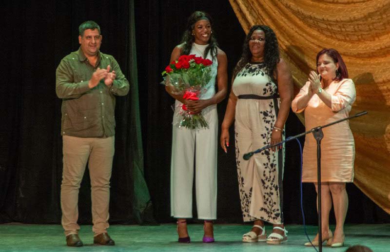 Durante el acto también se le entregó un reconocimiento a la triplista Leyanis Pérez Hernández, que este domingo recibió la réplica del Blasón de la Ciudad y Escudo de la Provincia de Pinar del Río.