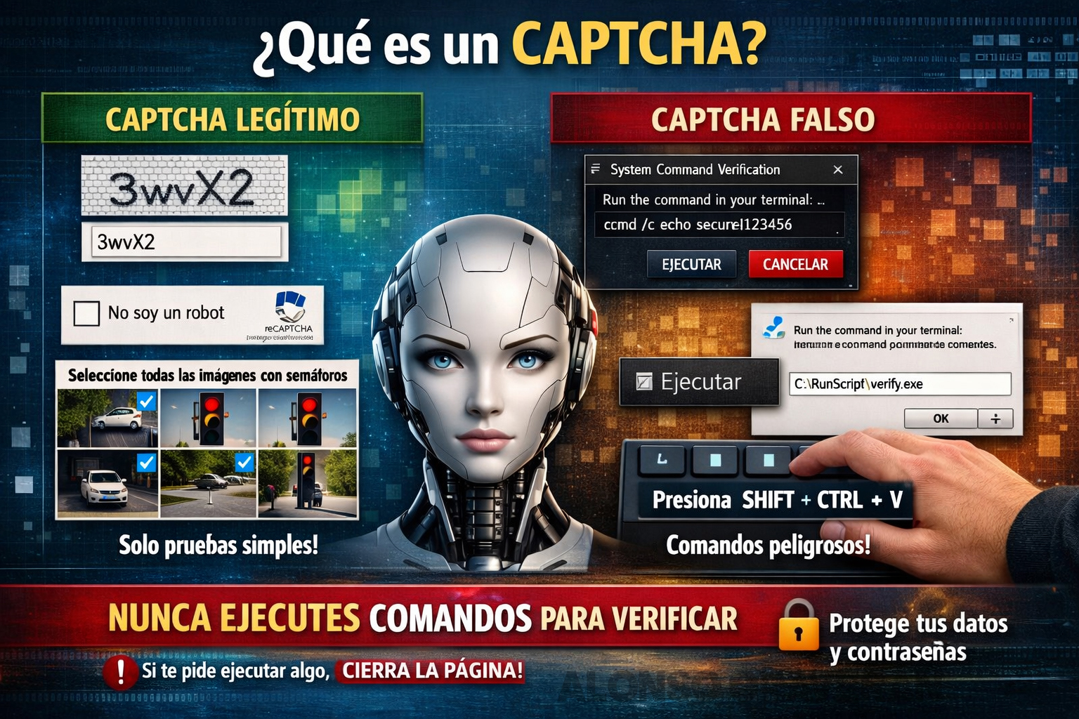La próxima vez que un sitio te pida “verificar que no eres un robot” y te solicite ejecutar algo en tu computadora, recuerda: la seguridad nunca exige obediencia ciega, sino sentido crítico.