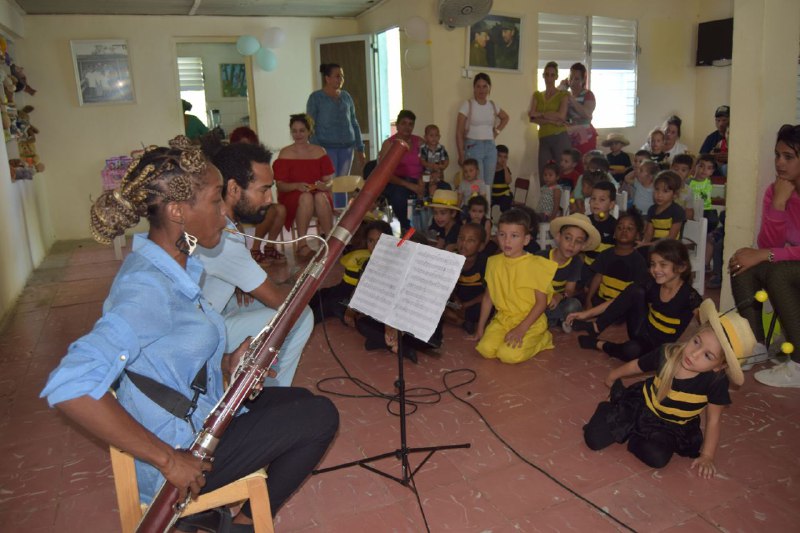 A la celebración por el aniversario de Futuros Vaqueritos acudieron artistas de la Asociación Hermanos Saíz en Vueltabajo, quienes compartieron con los menores canciones, adivinanzas y juegos.