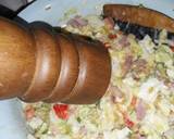 4- Incorporamos el beico, salchicha y un poco de arroz amarillo del de ayer que deje para esto, removemos bien