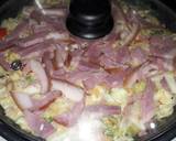 1- Pasamos la papa por un rallador, no pueden ser los más fino, porque sino botan el jugo. Picamos la coll, la cebolla y los pimientos en juliana. Parte del beico y la salchicha los picamos a la jardinera. Reservamos