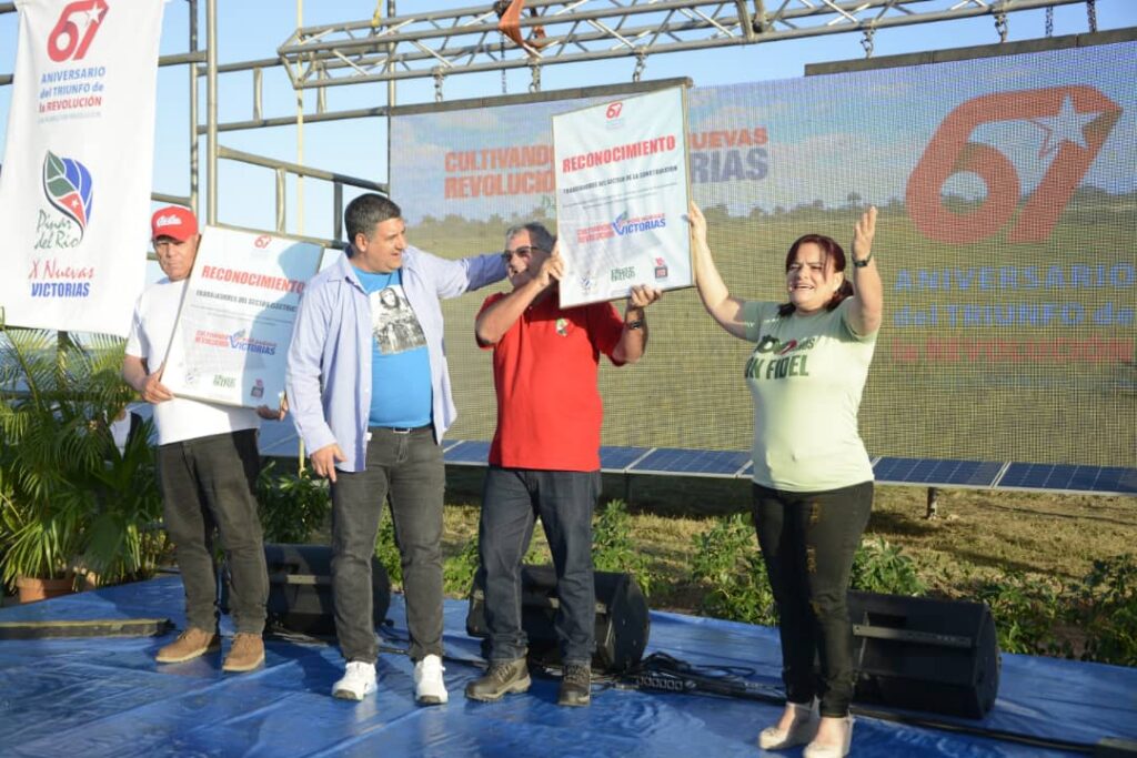 En nombre de sus trabajadores, recibieron los reconocimientos Pablo Pérez San Jorge, director de la Empresa Eléctrica en el territorio y Biadermil Piñeiro Portales, director de la Empresa de la Construcción.