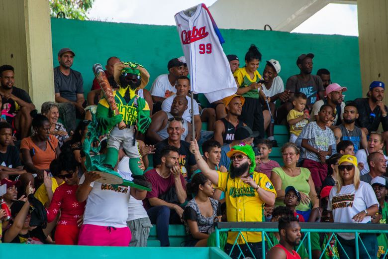 A ritmo de conga o de la música del estadio; con carteles, globos y camisetas en alusión a los colores del conjunto pinareño, la afición vive el béisbol, un sentimiento nacional que se «enciende» en cada temporada por los resultados de su equipo.