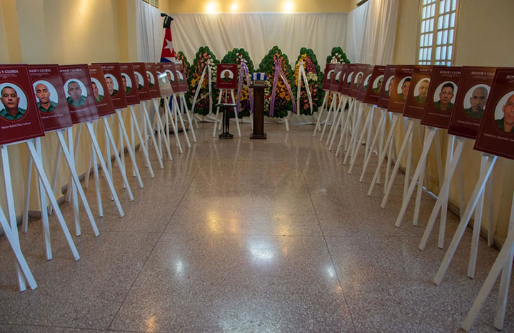 «El coraje y el ejemplo de cada uno de estos 32 hermanos, se multiplican en millones de cubanos», expresó la integrante del Comité Central del Partido Comunista de Cuba y su primera secretaria en la provincia, Yamilé Ramos Cordero, en el homenaje póstumo del pueblo de Pinar del Río a los combatientes caídos heroicamente en el cumplimiento de su deber, en Venezuela .