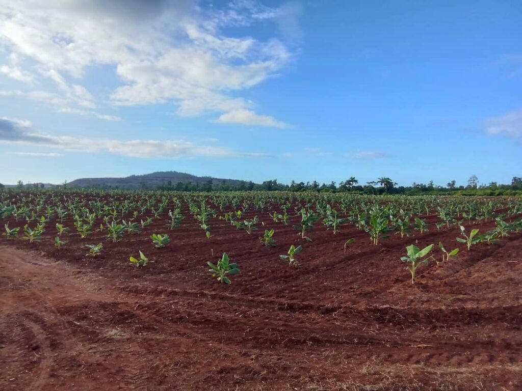 Seguidamente, el presidente cubano visitó el Área Estatal Agrícola de la Empresa Ganadera, en la que se encuentran sembradas 8 hectáreas de plátano que estarán en producción para el mes de junio del próximo año.